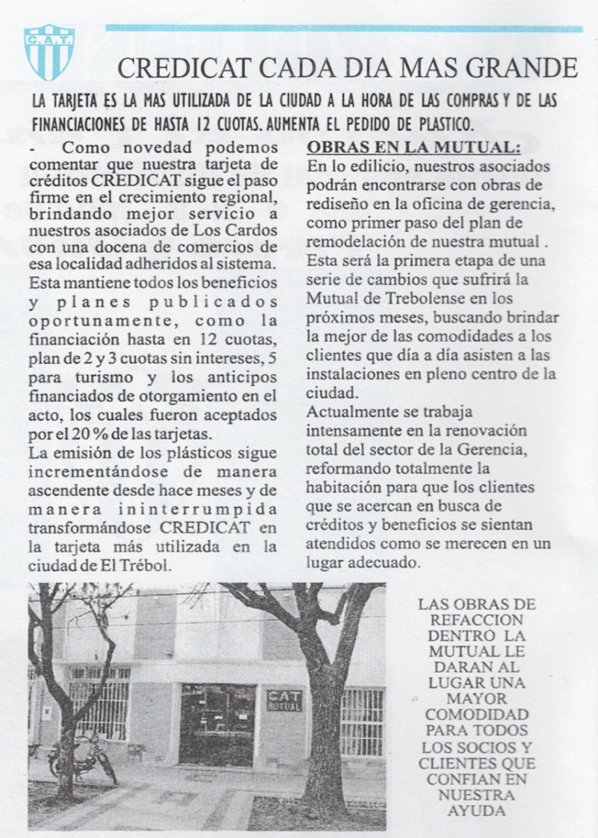 El presente Archivo Histórico digitalizado ha sido confeccionado con los materiales resguardados en el tiempo por la institución. El mismo no es cerrado y puede ser enriquecido por los protagonistas y familiares aportando datos y fotografías. Contacto: archivohistorico@trebolense.com