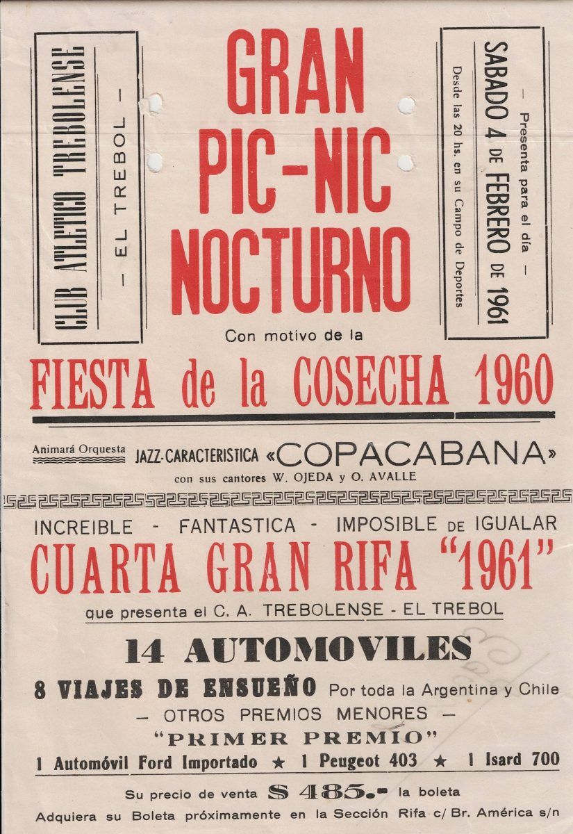 Los prestadores del servicio de organización de la rifa de San Martín de CP que hemos mencionado pertenecían a la Orgnización de los Sres: Elvio Ravassi David Ravassi Rodolfo Pelizari Ramón Vissani de la ciudad de Leones (Cba), gente de amplia trayectoria, conocimientos y experiencia en este tipo de eventos; y fueron los señores Poloni y Galleano de C. Pellegrini quienes vincularon a Club Trebolense con la Organización de Leones para la gestión de las rifas que, por cierto, no era nada sencillo ya que ello implicaba la gestión de permisos gubernamentales, exención de impuestos, compra de premios, impresión y distribución de boletas, gestión administrativa de la red de vendedores y cobro de las cuotas a los adquirentes, actas de entrega de premios, entrega de documentación respaldatoria ante autoridades provinciales, etc.