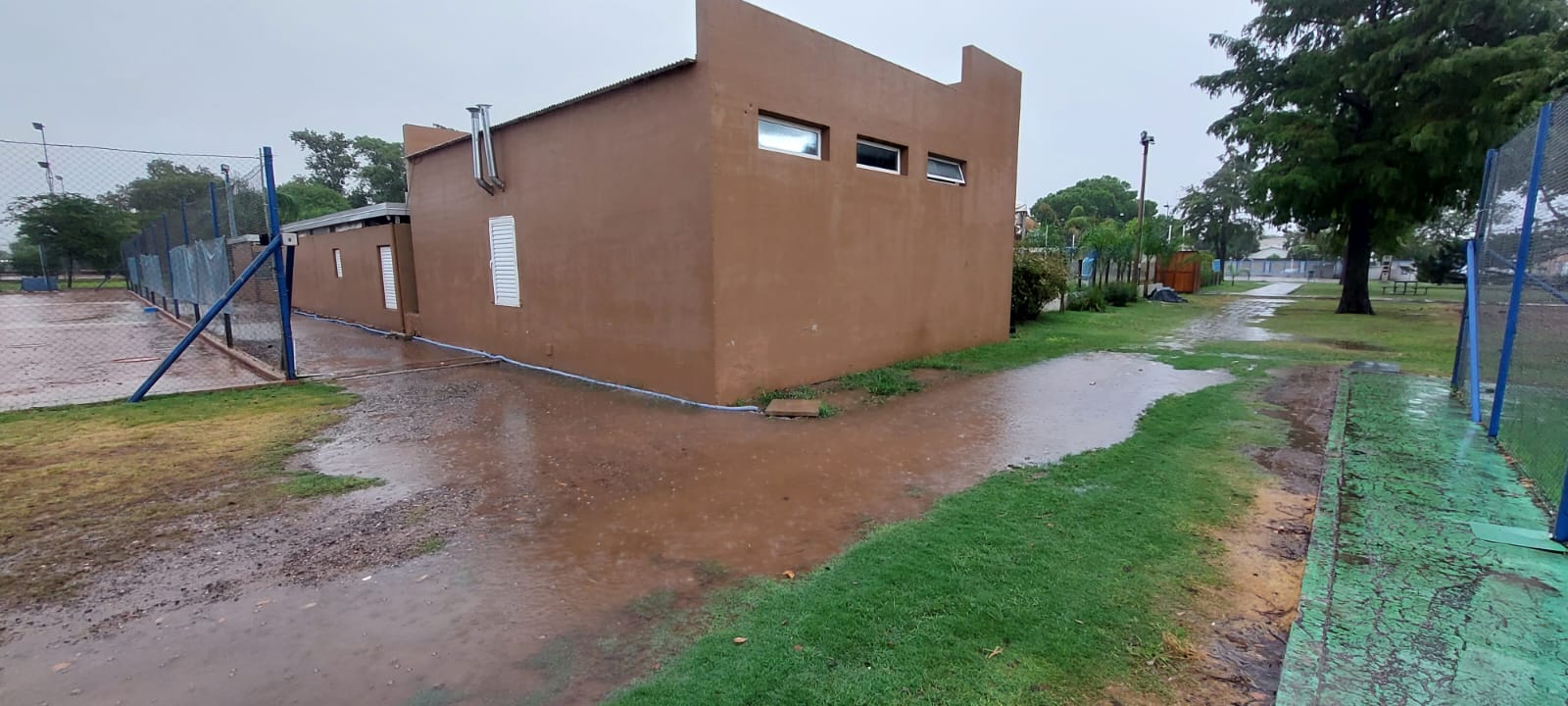 Ese camino, que ya está tiene una parte hecha en hormigón, posee un tramo, desde la pileta hacia el padel y las canchas de tenis de cemento, que sufría anegamientos y el viejo material – una especie de adoquín hexagonal – se iba hundiendo y en el mismo, se formaba un gran charco de agua, en épocas de lluvia.